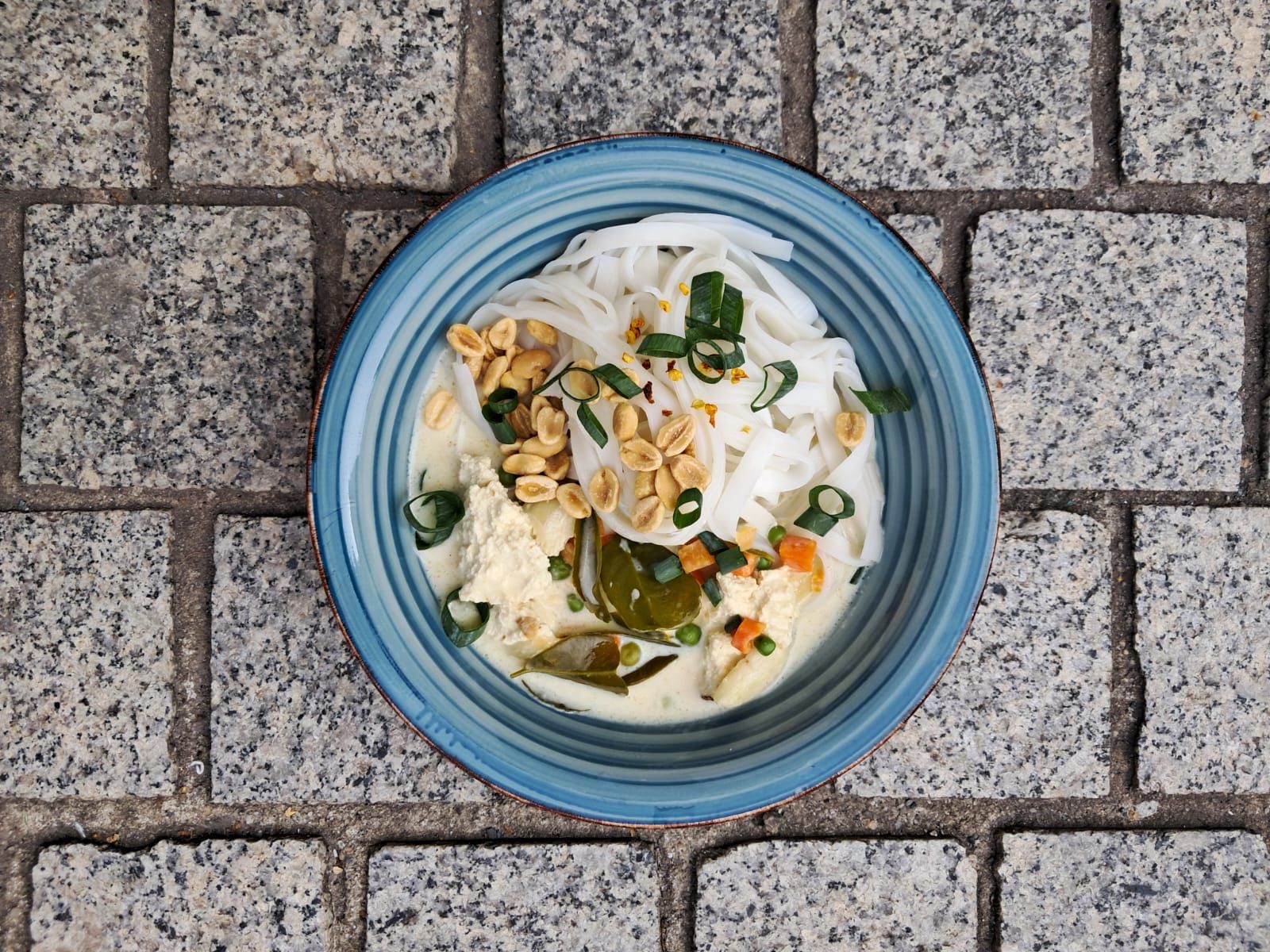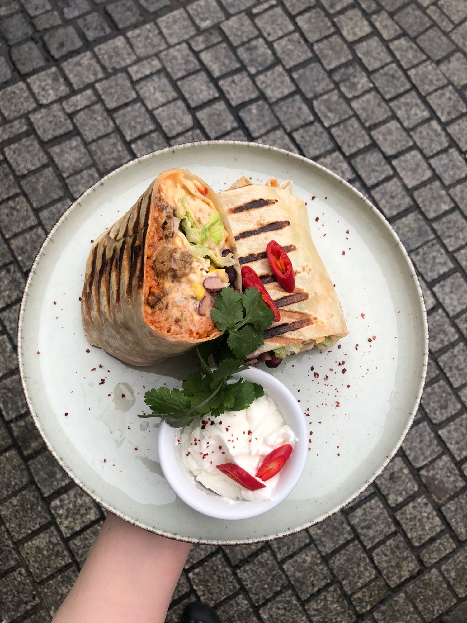 Pyzy z farszem orientalnym z czerwonej soczewicy i suszonych pomidorów, podawane z wege śmietanką, słonecznikiem i pietruszką duże opakowanie